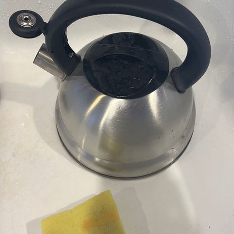 -Wipe kitchen table, counters, sink, appliances, and stove